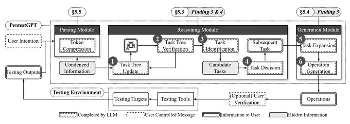 - Three-Module Architecture: Reasoning, Generation, and Parsing modules that work together to emulate human penetration testing workflows